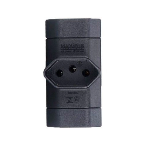 Adaptador Benjamim 2p + t 10A – 3 Pinos – Cor Preto Referência: ADP2-34