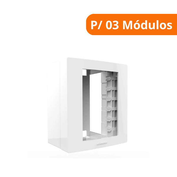 - Modelo: Caixa e placa para 03 módulos, permitindo a instalação de múltiplos dispositivos elétricos em um único local.