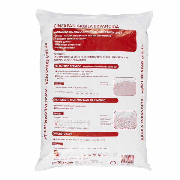 Esta Argila Expandida, da Cinexpan, possui um formato que facilita o manuseio e, consequentemente, a sua aplicação em diferentes lugares. Leve, trata-se de bolinhas de cerâmica pequenas e arredondadas.