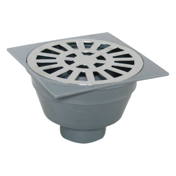 Ralo Sifonado Quadrado Cinza Com Grelha Redonda – Astra