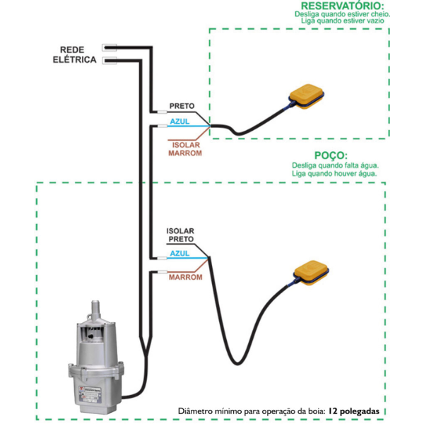 Visão geral O Sensor 15A é um interruptor tipo boia de nível para controle e indicação do nível de água em poços ou reservatórios. Protege a bomba contra o trabalho sem água (pane seca) e também controla o nível em reservatório, evitando o seu transbordamento. Tem uma corrente máxima de 15 amperes.