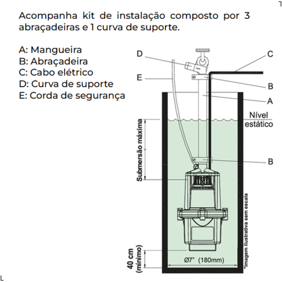 - Tipo de bombeamento: Água limpa, sem resíduos sólidos