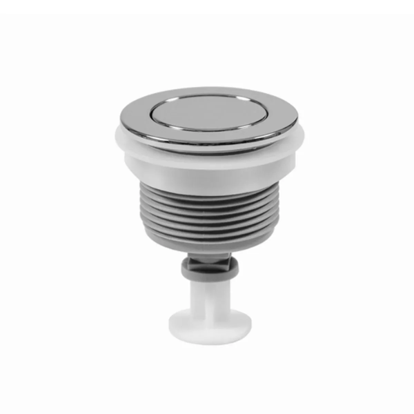Botão de acionamento simples de descarga, instalado na lateral da caixa acoplada.