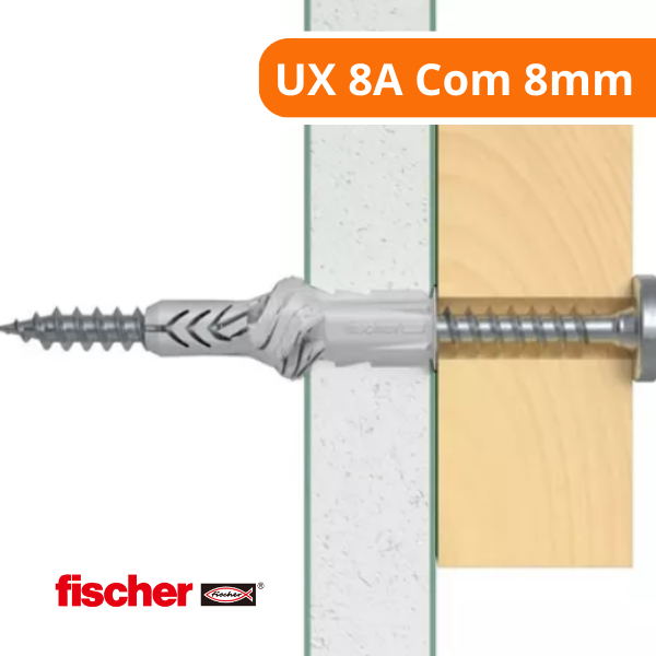 A bucha universal UX 8A com aba da Fischer é ideal para fixações seguras em diversos tipos de materiais, como concreto, alvenaria, blocos ocos e drywall. Seu corpo em nylon de alta resistência proporciona excelente expansão e firmeza, enquanto a aba evita que a bucha afunde no furo durante a aplicação.