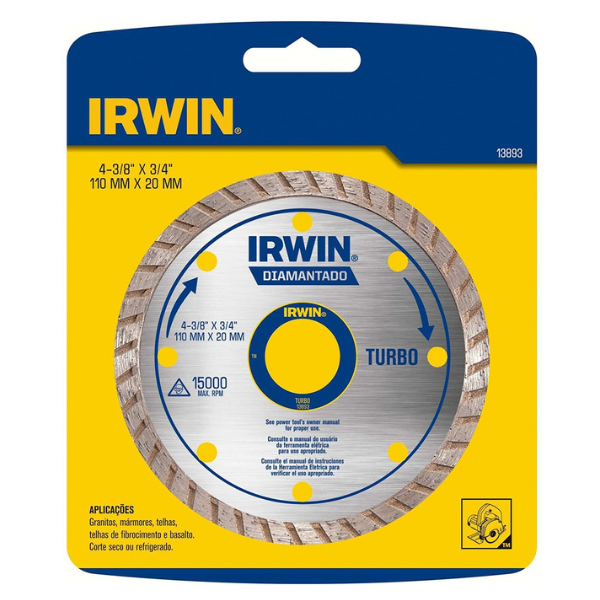 O Disco Diamantado Turbo 110x20mm Irwin é a escolha ideal para quem busca eficiência, acabamento superior e versatilidade nos cortes. Projetado para oferecer alto desempenho em aplicações profissionais, esse disco combina o melhor das tecnologias de corte com segurança e resistência.