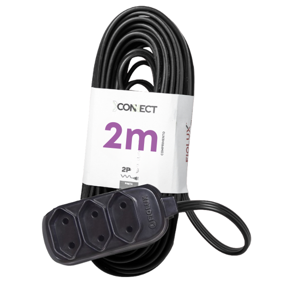 Extensão Connect 10A 3 Tomadas 2P 2M Preto Bipolar – Fiolux