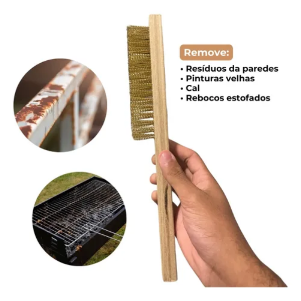 Perfeita para limpeza pesada, remoção de ferrugens, tintas, resíduos e acabamento em superfícies metálicas, a escova de aço oferece resistência e eficiência. Seu cabo em madeira garante conforto durante o uso, tornando-a ideal tanto para uso profissional quanto doméstico.