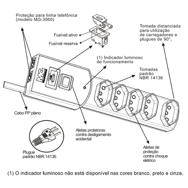 - Proteção Contra Sobrecarga: Oferece segurança extra para seus aparelhos, evitando danos causados por picos de tensão ou sobrecargas.