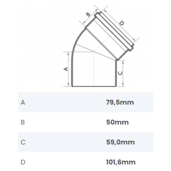 O Joelho 45° Esgoto SN DN 100 mm da Fortlev é um componente hidráulico em PVC utilizado para direcionamento de redes de esgoto. Ele permite curvas suaves de 45 graus, garantindo boa fluidez e prevendo acúmulo de resíduos.