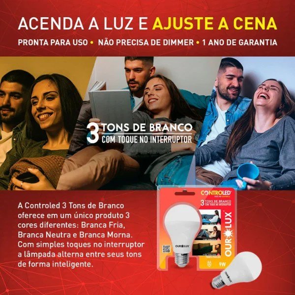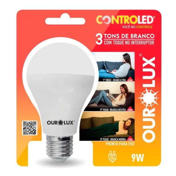 Lâmpada Inteligente Controled 3 Tons Branco 9W Ourolux