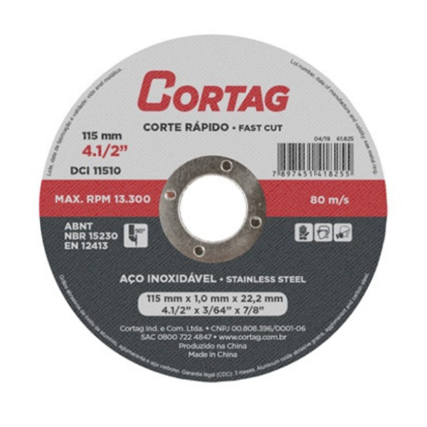 Disco De Corte Inox 115×1,0x22,22mm 61825 – Cortag