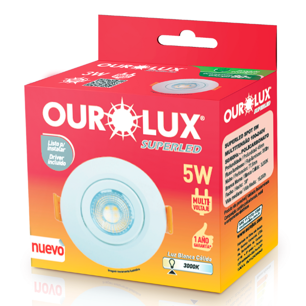 Luminária Superled Spot Redondo 5W 3000K Branco Morna Ourolux 05601