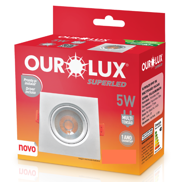 Luminária Superled Spot Quadrado 5W 3000K Branco Morna Ourolux 05603