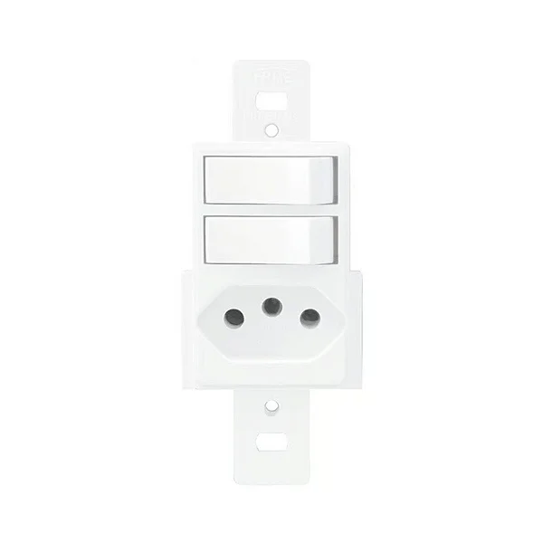 Interruptor 2 Teclas simples +Tomada 10A SPL Branca – Dunas Romazi
