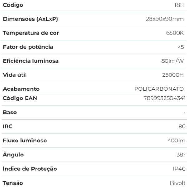SPOT LED DIRECIONÁVEL QUADRADO 5W 6500K BIVOLT BRANCO
