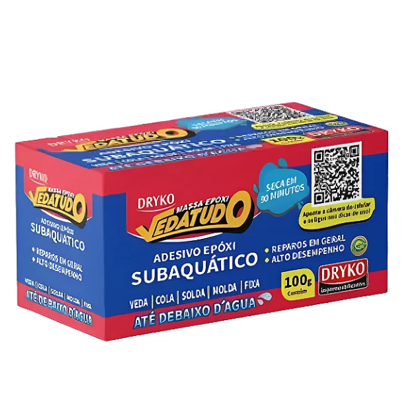 A Massa Epóxi Veda Tudo 100g da Dryko é um produto de vedação e reparo de alta performance. Composta por resina epóxi bicomponente, ela oferece excelente aderência em diversos tipos de superfícies, como metais, plásticos, madeira e concreto. Ideal para consertos de emergências, a massa epóxi é resistente a altas temperaturas, água, óleos e produtos químicos, podendo ser aplicada tanto em ambientes internos quanto externos. Uma solução prática e durável para vedar, preencher fissuras, colar peças e realizar reparos em geral.