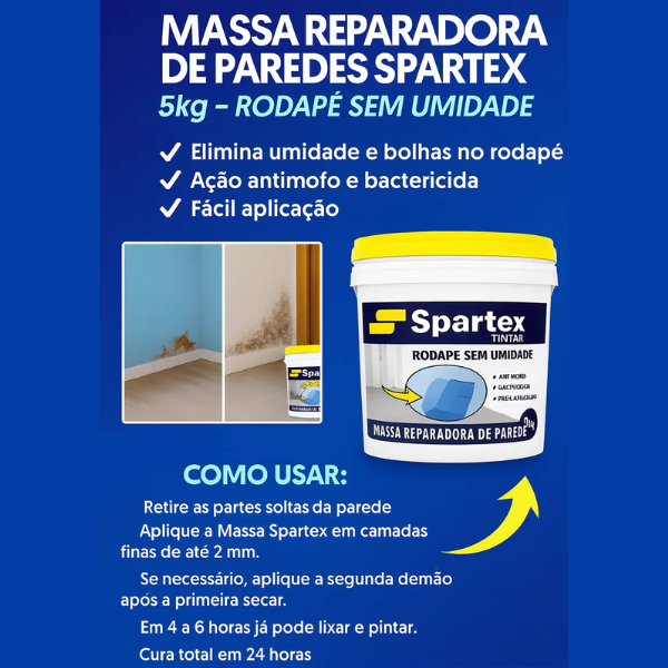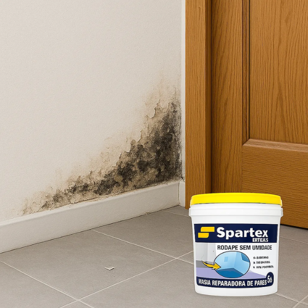 massa repara umidade spartex, massa contra umidade, massa antimofo para parede, massa impermeabilizante para rodapé, massa lisa para umidade, reparo de parede úmida.