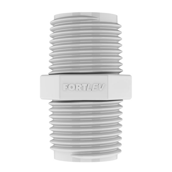 Muito mais cuidado com a água. O Sistema Predial de Água Fria Fortlev apresenta um conjunto de tubulações e conexões, cuidadosamente desenvolvidas conforme norma ABNT NBR 5648, para conduzir água potável à temperatura ambiente até os pontos de utilização. Os Tubos e Conexões Fortlev são fabricados em PVC e suportam até 7,5Kgf/cm² ou 75 m.c.a. à temperatura de 20°C. O Nípel Roscável tem a função de conectar duas peças com rosca interna, conhecida como rosca fêmea.