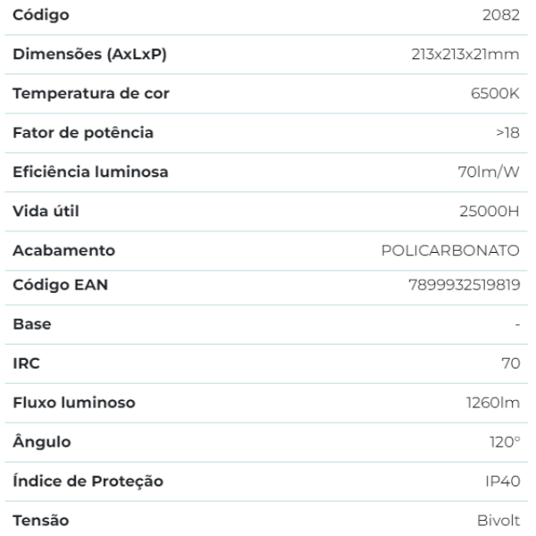 PAINEL ECO EMBUTIR 18W 6500K BIVOLT