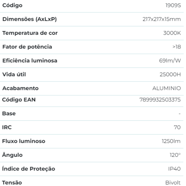 PAINEL EMBUTIR QUADRADO 18W 3000K BIVOLT