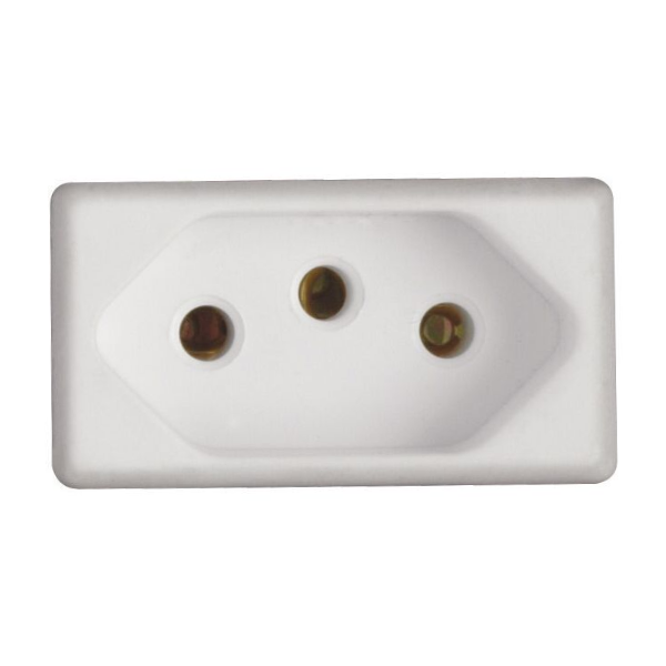 Produzida em termoplástico de alta resistência, ela possui acabamento em brilho na cor branca, característica que não retém poeira, mantendo o visual sempre limpo e elegante. Apresenta o modelo 4×2 com dois postos separados na horizontal para utilizar os módulos da Linha Liz de forma independente e organizada.