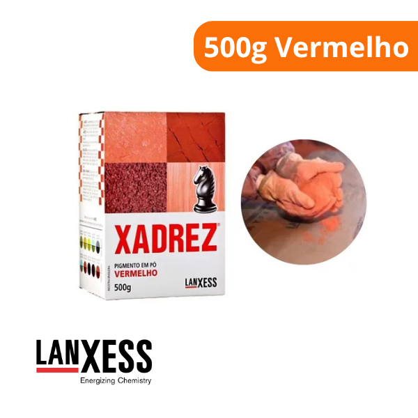 O Pó Xadrez Lanxess Vermelho 500g é um pigmento mineral à base de óxido de ferro, utilizado para tingir argamassas, concretos, pisos, cal, gesso e outros materiais de construção. Possui alta resistência, não desbota e proporciona uma coloração uniforme e duradoura.