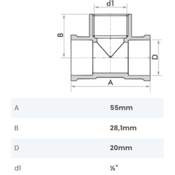 Tê Soldável com Bucha de Latão 20mm x 1/2″ Fortlev