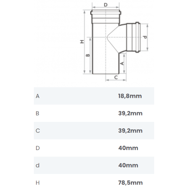 As conexões de 40mm não possuem bolsa para junta elástica.