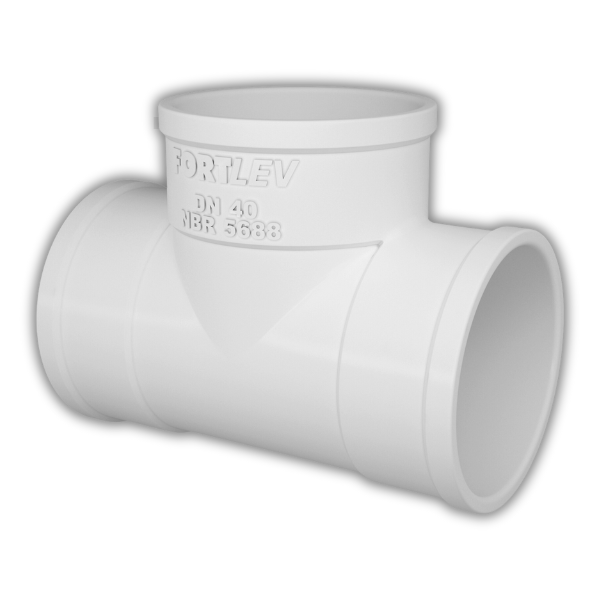 Muito mais estanqueidade. O Sistema Predial de Esgoto SN Fortlev é composto por Tubos, Conexões, Caixas Sifonadas e Ralos cuja função é coletar e conduzir os despejos provenientes do uso adequado dos aparelhos sanitários a um destino apropriado, visando atender às demandas de instalações de diversos Tipos. O Tê Esgoto SN Fortlev é fabricado em PVC na cor branca e projetado para escoamento em regime não contínuo à temperatura máxima de 45°C. Os produtos da Linha Esgoto SN Fortlev são fabricados conforme norma ABNT NBR 5688.