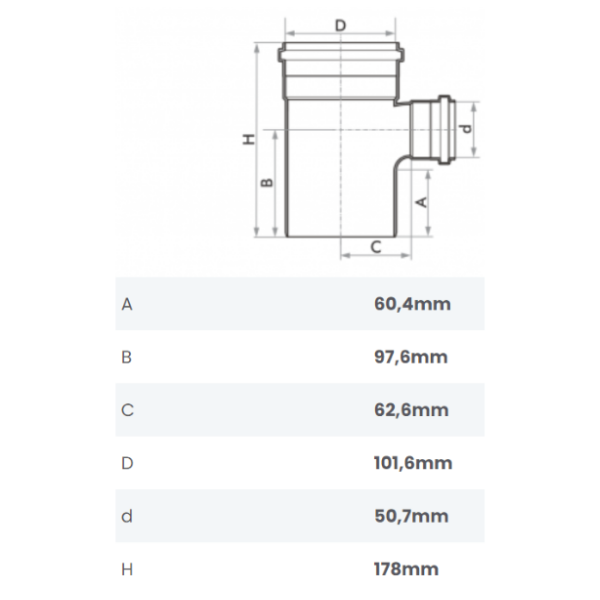• Dimensões: 100 mm na tubulação principal (tronco) e 50 mm na derivação