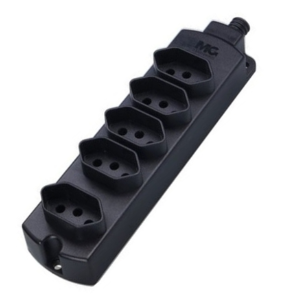 - Padrão 2P+T: Conta com 5 entradas no formato 2P+T, garantindo segurança ao oferecer conexão de aterramento.