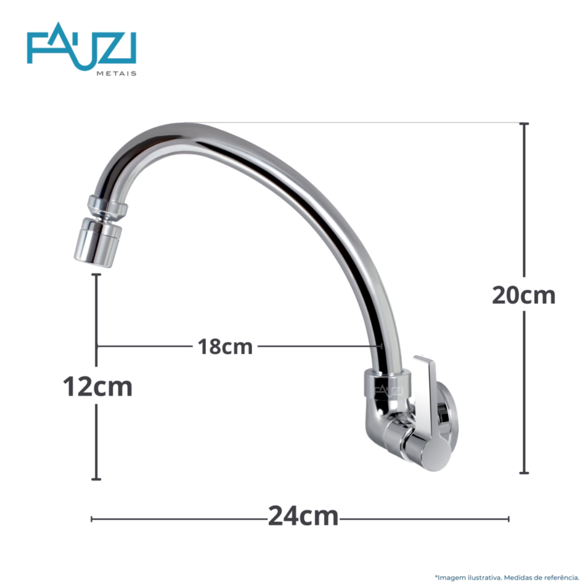 Torneira Cozinha Parede Cromada Bica Móvel 360° 1/4 Volta – Fauzi