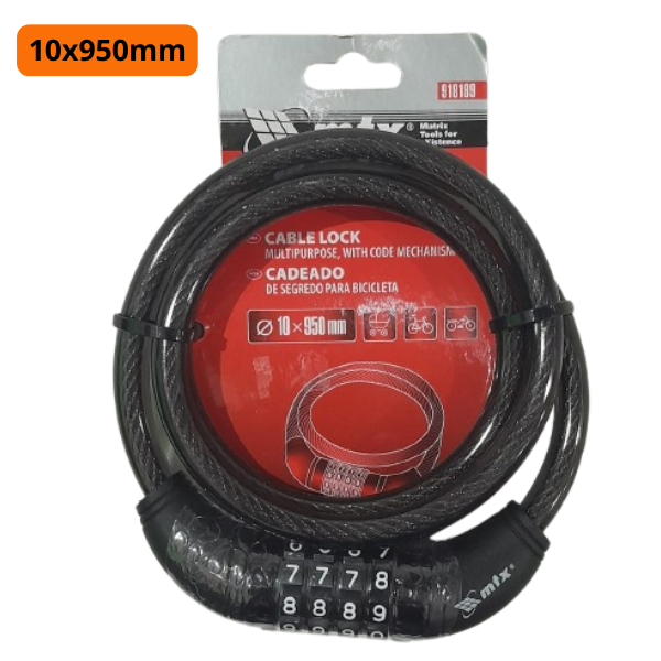 Trava Cabo De Aço Com Cadeado De Segredo, 10x950mm – MTX
