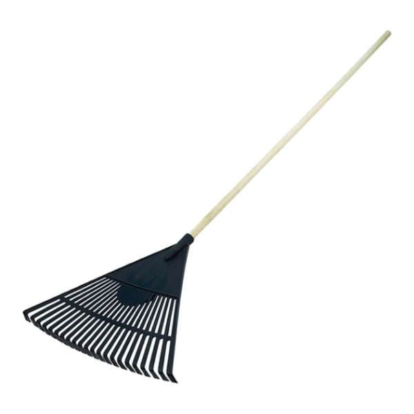 Descrição resumida: A vassoura plástica preta com 22 dentes e cabo é ideal para limpeza de jardins, pátios e áreas externas. Sua estrutura oferece eficiência na remoção de folhas e detritos, sendo resistente e fácil de manusear.